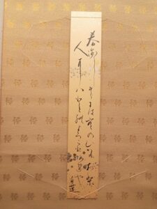 2025年9月7日 / 最終更新日 : 2025年8月28日 sehbi-an 日記 柳原白蓮 短冊「春浅しそらは空のひかりあり人にはひとのよろこびあれや」 盛美庵コレクション 柳原白蓮 短冊「春浅しそらは空のひかりあり人にはひとのよろこびあれや」 Follow me! おすすめの関連記事はこちらです。あわせてどうぞ。雪餅冬枯れ重陽『真贋ものがたり』三五夜 霜月の月釜『東越青丘~宗旦居士を想う』に参加して大阪の茶室での春の月 FacebooktwitterHatenaPocket コメントを残す コメントをキャンセルメールアドレスが公開されることはありません。 ※ が付いている欄は必須項目ですコメント ※ 名前 ※ メール ※ サイト 次回のコメントで使用するためブラウザーに自分の名前、メールアドレス、サイトを保存する。