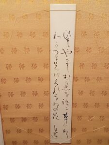 2025年9月15日 / 最終更新日 : 2025年8月28日 sehbi-an 日記 柳原白蓮 短冊「ひそやかにむかしを語る草もあり わがつま先のくれなゐの花」 盛美庵コレクション 柳原白蓮 短冊「ひそやかにむかしを語る草もあり わがつま先のくれなゐの花」 Follow me! おすすめの関連記事はこちらです。あわせてどうぞ。大阪の茶室で迎える年の瀬小雪短編小説『不昧公奮闘記』宮古上布宵風室町期に於ける成立論的な考察 FacebooktwitterHatenaPocket コメントを残す コメントをキャンセルメールアドレスが公開されることはありません。 ※ が付いている欄は必須項目ですコメント ※ 名前 ※ メール ※ サイト 次回のコメントで使用するためブラウザーに自分の名前、メールアドレス、サイトを保存する。