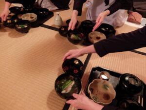 京都・ひととせ牧田の牧田旬加氏の一汁二菜のあと、鈍阿焼と歴代楽焼で濃茶と薄茶を楽しみました。とても盛況で、参加者の方々、ありがとうございました。